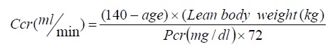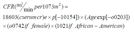 دراين معادله ، افزايش سطح كراتي نين پلاسمايي متعاقب افزايش وزن بيمار مورد محاسبه قرار مي گيرد . از طرف ديگر بعلت كمتر بودن توده عضلاني خانمها ، نتيجه اين معادله در 0.85 ضرب مي گردد.